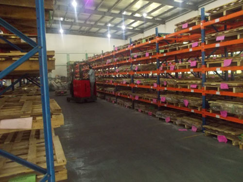 被剪切的產品快速經過自動包裝機,品管檢驗后放入貨架倉庫后向客戶發貨。